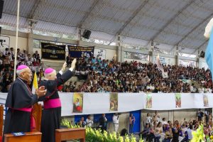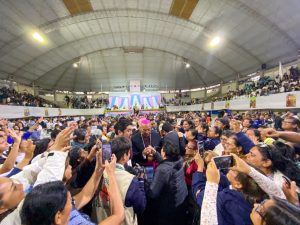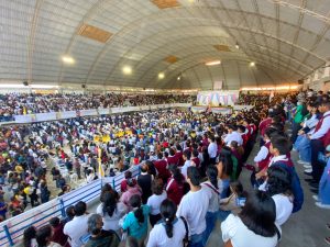 24 de agosto de 2024 (Oficina de Prensa).- En medio de un clima de profunda piedad mariana, más de 3000 familias piuranas se reunieron en el Coliseo del Colegio Salesiano – Don Bosco, para rezar a los pies de la Virgen María Auxiliadora, el Santo Rosario junto a Mons. Paolo Rocco Gualtieri, Nuncio Apostólico del Papa Francisco en el Perú, y a nuestro Administrador Apostólico Mons. Guillermo Elias Millares. Demostrando que somos una Ciudad no sólo profundamente Eucarística, sino también Mariana.