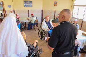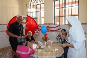 Nuestro Administrador Apostólico pasó momentos memorables con los abuelitos, a quienes les obsequió rosarios y estampas, y les recordó que la Iglesia valora el don de una vida larga que significa presencia de sabiduría y experiencia en nuestras vidas. Los animó a orar por las religiosas que cuidan de ellos, aliviando sus fatigas, sus enfermedades y sufrimientos. Citando al Papa Francisco, los animó a mantener la mirada fija en Jesús que nunca abandona a quien confía y espera en Él.