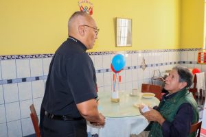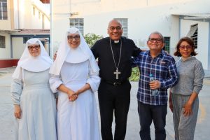 Posteriormente, y acompañado de la Madre Gonzáles, nuestro Pastor recorrió las diferentes instalaciones del Asilo, donde pudo conocer de primera mano la noble labor que realizan las religiosas y voluntarios que se entregan con esmero a la atención de los cerca de 90 abuelitos que se encuentran residiendo en el lugar.