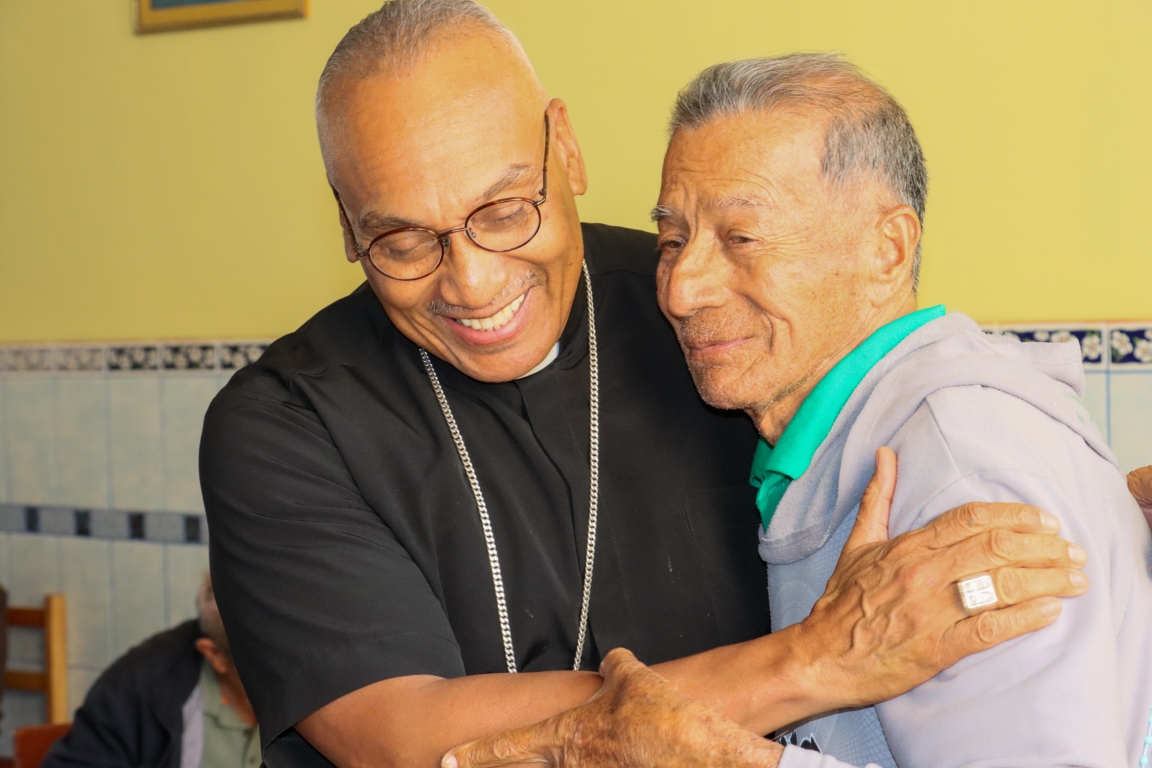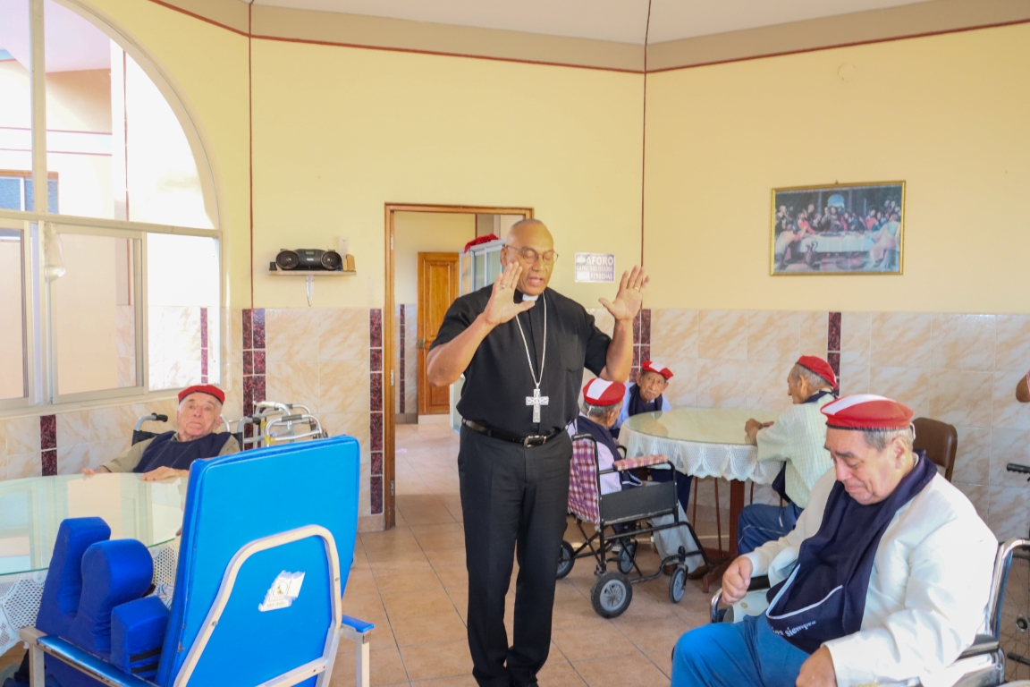 Posteriormente, y acompañado de la Madre Gonzáles, nuestro Pastor recorrió las diferentes instalaciones del Asilo, donde pudo conocer de primera mano la noble labor que realizan las religiosas y voluntarios que se entregan con esmero a la atención de los cerca de 90 abuelitos que se encuentran residiendo en el lugar.