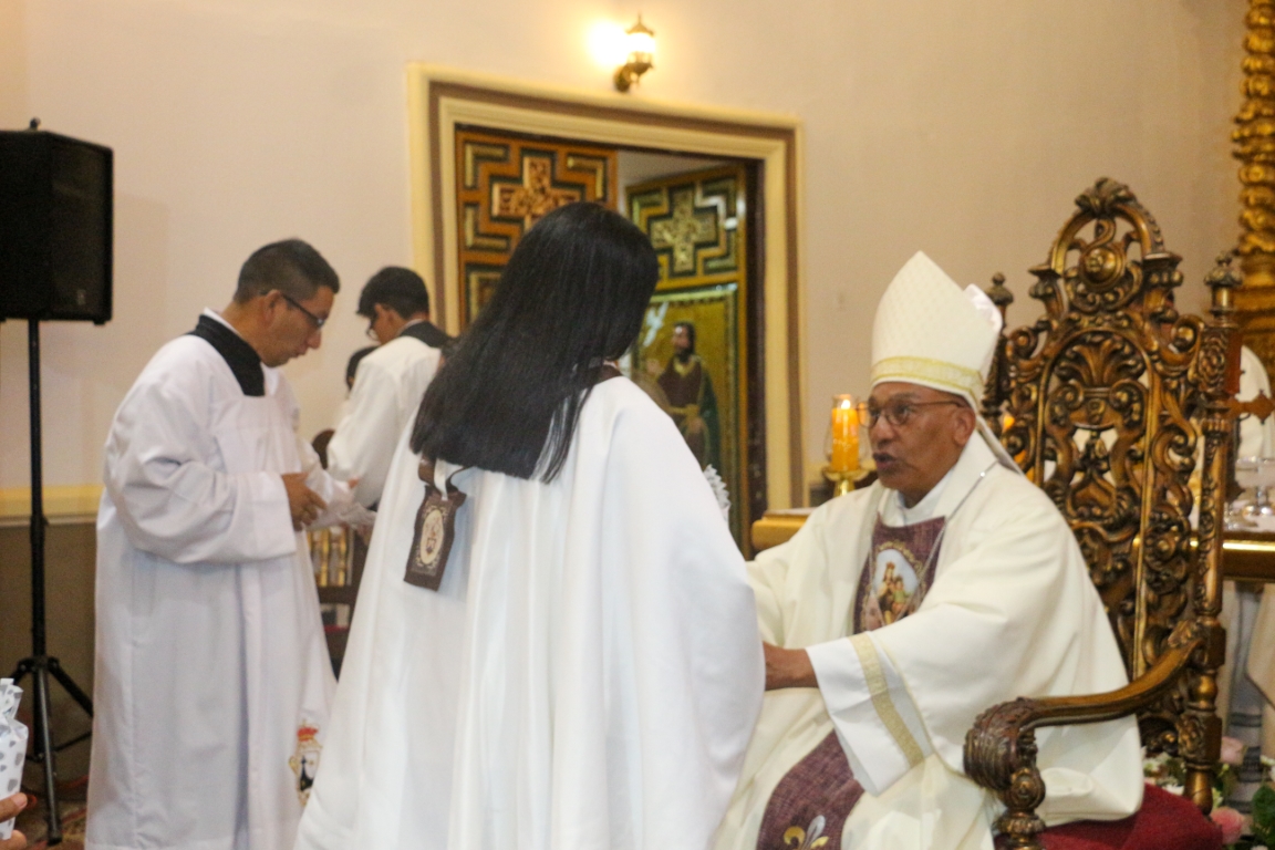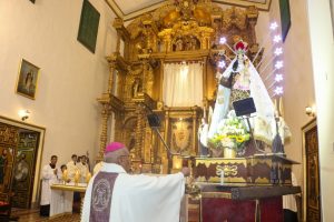 16 de julio de 2024 (Oficina de Prensa). – Nuestro Administrador Apostólico Mons. Guillermo Elías Millares, presidió la Santa Misa durante la Novena en honor a la Virgen, Nuestra Señora del Monte Carmelo, en su histórico Santuario de nuestra ciudad. Concelebró la Eucaristía, el R.P. Alexis Lazo Boggio, Rector del Santuario, también estuvieron presentes una gran cantidad de fieles devotos junto a los miembros de la Cofradía de la Virgen del Carmen, que llegaron para rendir homenaje a nuestra Madre en su Santuario que data del Siglo XVII, uno de los Santuarios más hermosos y que mantienen la mayor cantidad de muestras de arte barroco de toda nuestra Arquidiócesis. Santuario que desde 1974, ha sido declarado Monumento Histórico Nacional.