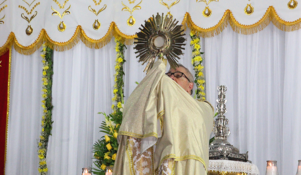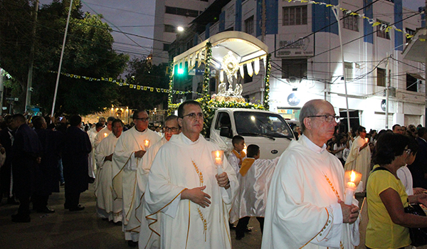 Queridos hermanos: Al final de nuestra Santa Misa, Jesús Eucaristía, recorrerá una vez más nuestras calles y plazas, hoy golpeadas por el dolor y el sufrimiento, causado primero por las intensas lluvias e inundaciones, y ahora por la epidemia del dengue, para darnos su bendición, consuelo y salud, y de esta manera manifestarnos que, Él nunca nos abandona, que su Amor es constante y permanente en nuestras vidas. Ello renovará nuestra esperanza y alegría de vivir.